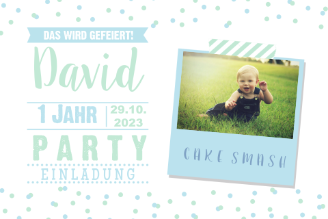 Blaue Einladungskarte Zum 1 Geburtstag
