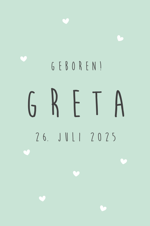 Geburtskarte Mit Herzchen Auf Mintgrunem Hintergrund