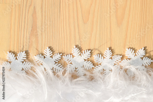 Winter Oder Weihnachten Fest Dekoration Hintergrund Einfach Schlicht Mit Hellem Holz Und Schneeflocken Buy This Stock Photo And Explore Similar Images At Adobe Stock Adobe Stock